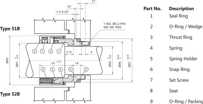 - Seal Ring Faces : Cabon, GFT, SiC and TC